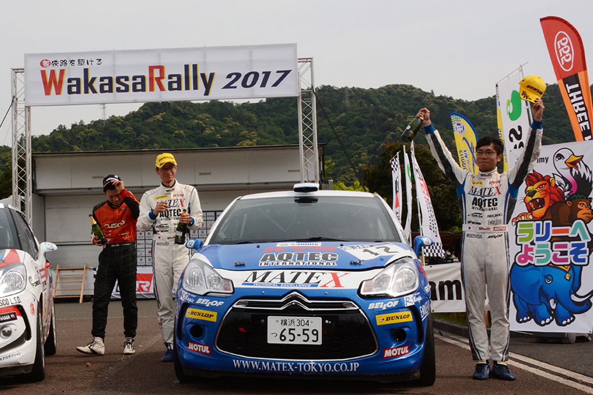 全日本ラリー選手権第4戦 クラス優勝のご報告 2017年05月22日(月) 「MATEX-AQTEC RALLY TEAM」は、5/19〜21に開催された全日本ラリー選手権第4戦「若狭ラリー2017」に参戦し、JN-5クラスにて優勝いたしました。皆様のご声援に心より感謝申し上げます。http://www.jrca.gr.jp
