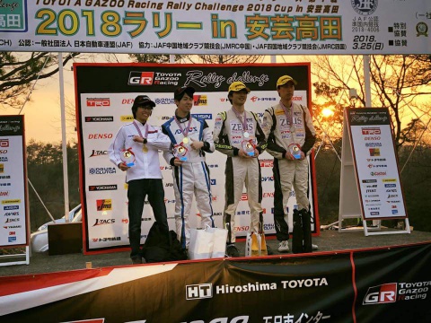「TOYOTA GAZOO Racing Rally Challenge」西シリーズ第1戦出場のご報告 2018年03月25日(日) 「MATEX-AQTEC RALLY TEAM」がサポートする京都大学体育会自動車部は、3/25に安芸高田にて開催された「TOYOTA GAZOO Racing Rally Challenge」西シリーズ第1戦に出場し、C-2クラスにおいて2位入賞いたしました(総合14位)。皆様のご声援に心より感謝申し上げます。公式リザルト
